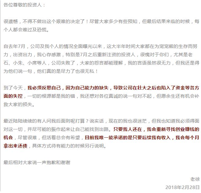 宠宠熊承担了决策者的贪婪和缺乏节奏的发展所带来的后果,这也给后来的宠物电商们敲响了警钟,宠物电商在“圈地”的过程中,也要结合企业自身的战略布局,顺应潮流,不要再因为资金链的断裂而输掉这场与时间的赛跑。